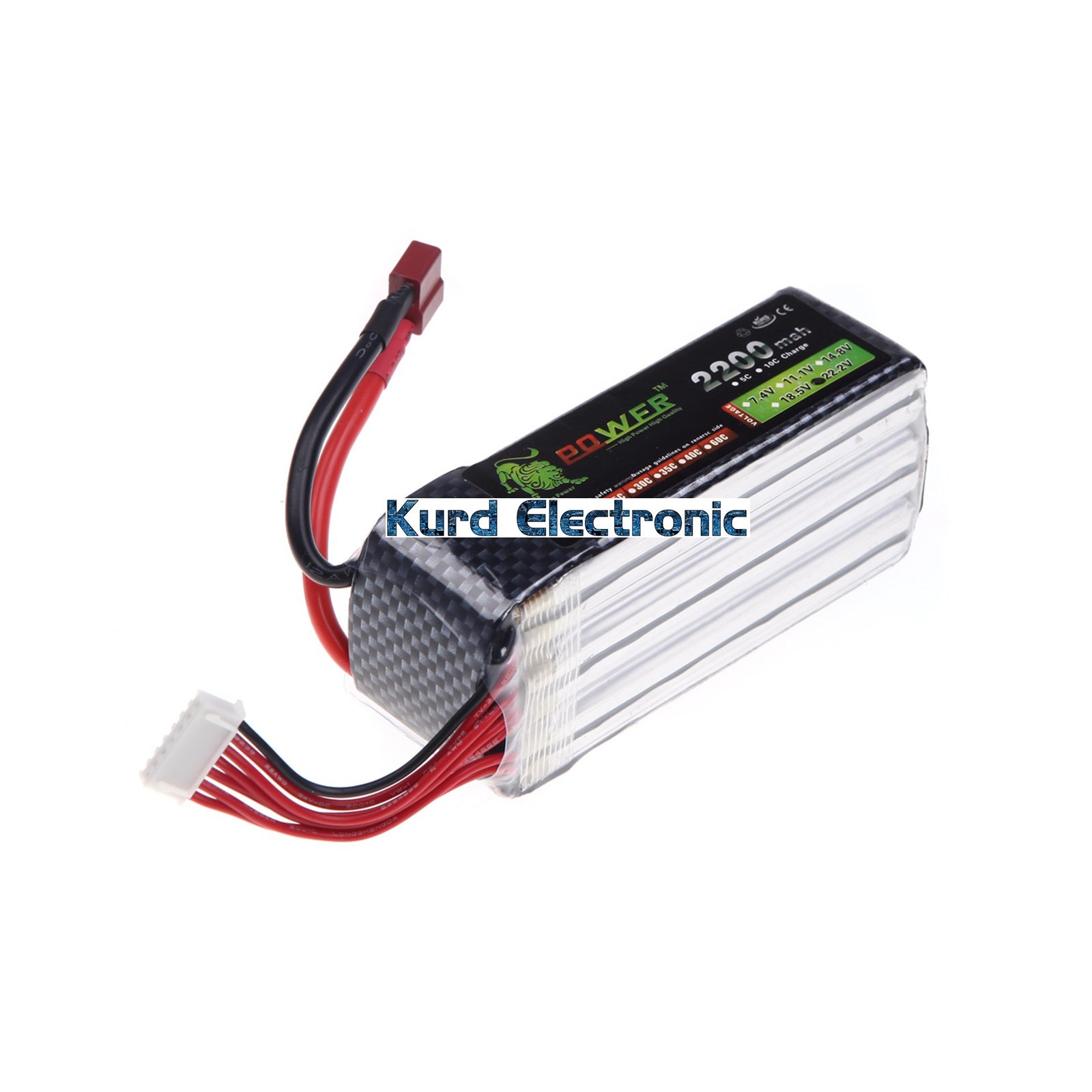 High capacity 22.2v 2200mAh li-polymer RC battery pack.