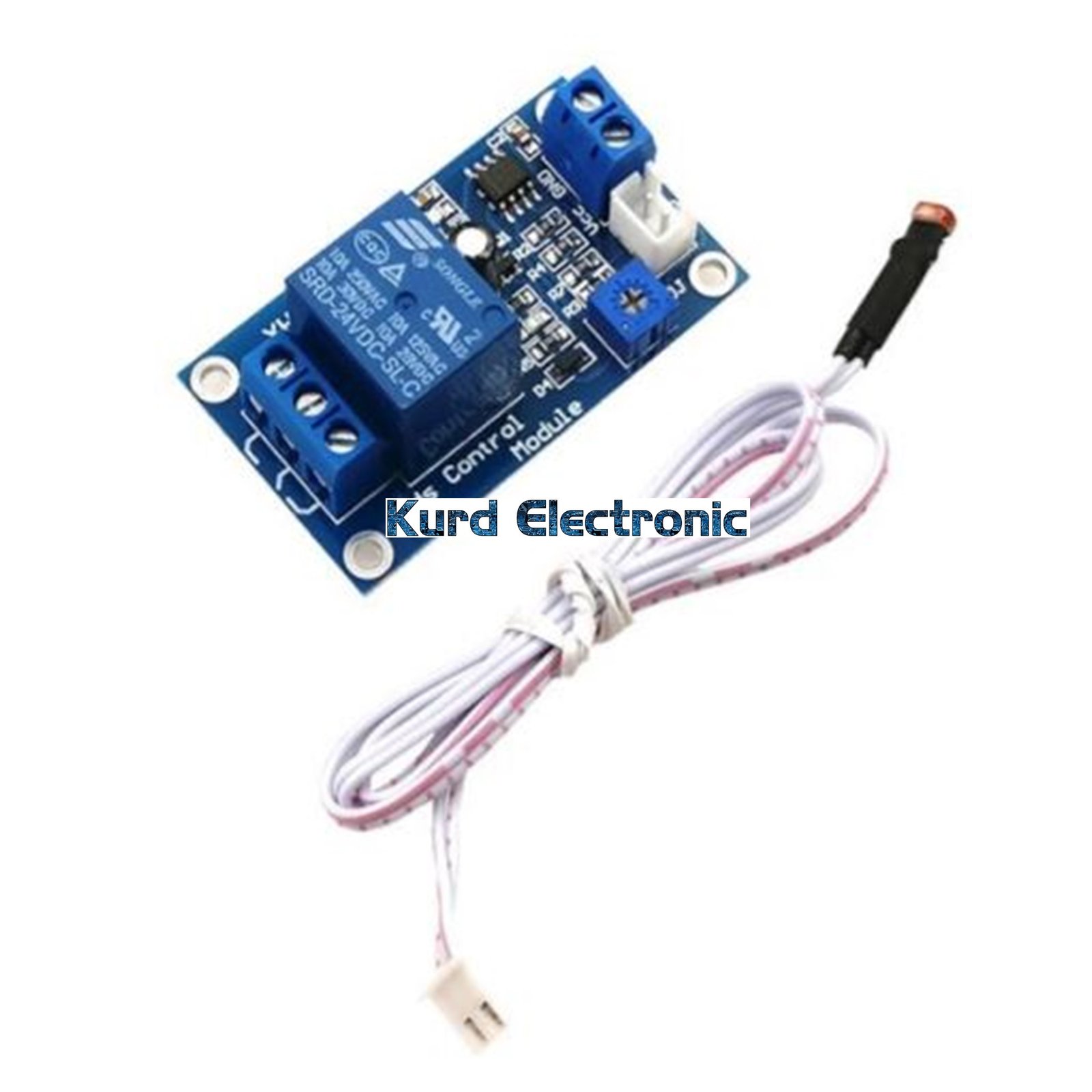 Light threshold can be adjusted by potentiometer to set the relay start
